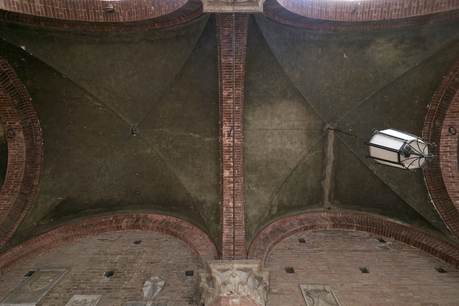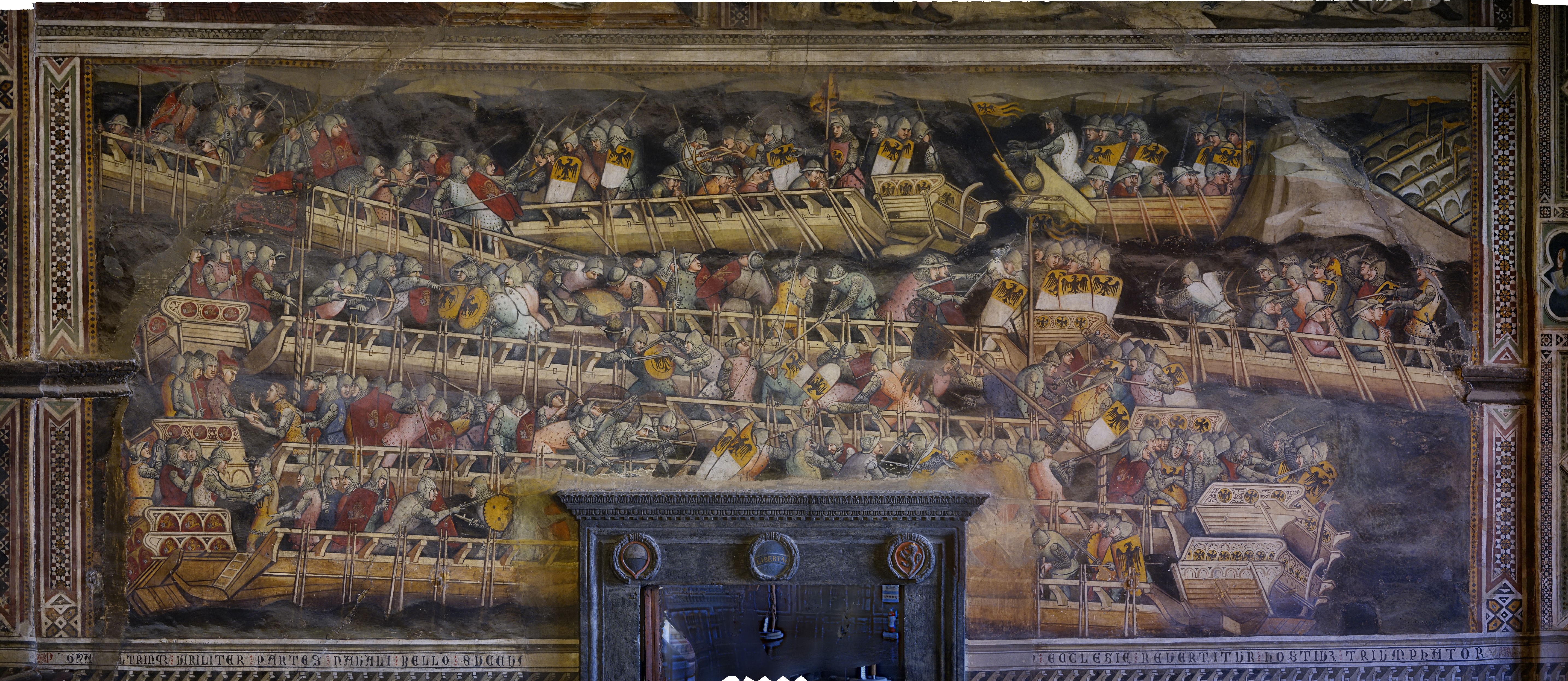 - Inside wall: Lippo di Vanni, The Battle of Sinalunga, monochrome fresco, 1363.